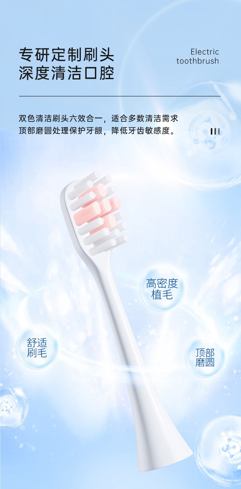 3、安装新刷头: 将新刷头对准电动牙刷的连接部分,确保刷毛与牙刷的底座对齐。然后用逆时针方向旋转,直到新刷头稳固地安装在牙刷上。确保刷头完全安装,不要使用过多力量。