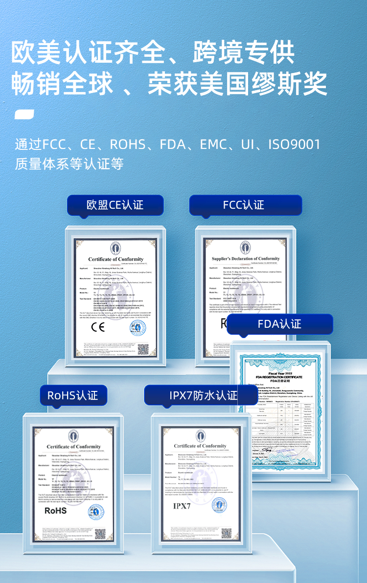 3、多项认证齐全:他们通过了FCC、CE、ROHS、FDA、EMC、UI、ISO 9001等多项认证,确保产品的合法合规。