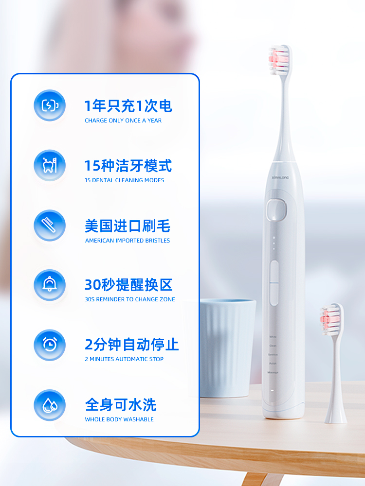 深圳电动牙刷ODM代工厂西马龙,10+年电动牙刷生产加工及电动牙刷出口经验,产品有彩屏电动牙刷,智能电动牙刷,防水电动牙刷,儿童软毛电动牙刷,情侣电动牙刷,网红电动牙刷。提供高品质电动牙刷批发生产,电动牙刷OEM贴牌,电动牙刷礼品定制服务,电动牙刷源头厂家供货,产品畅销全球。接下来一起跟着电动牙刷设计制造商西马龙来了解一下美白电动牙刷挑选技巧.挑选美白电动牙刷时,有几个因素需要考虑,以确保选择适合个人需求的产品。以下是一些建议: