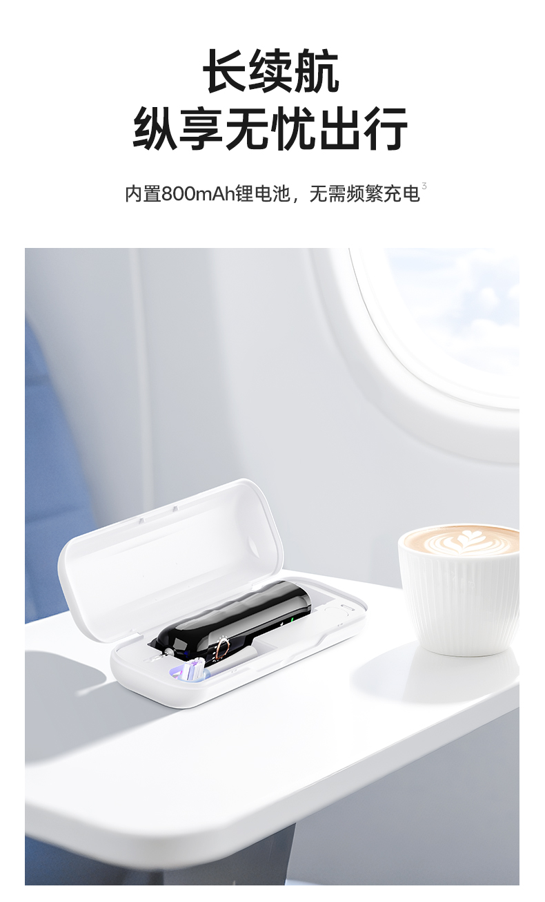 它小巧得惊人——比你的电动牙刷手柄更纤细轻盈,轻松滑入洗漱包、通勤包甚至口袋。出差旅行时,它不再是负担,而是守护口腔健康的隐形卫士。