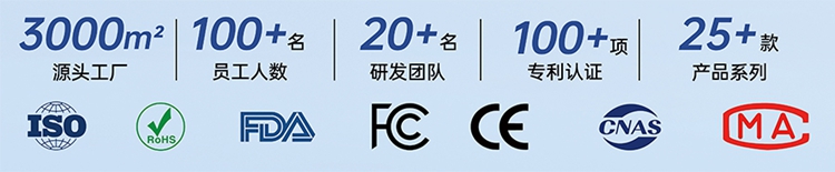我们以技术研发为核心,年产超500万支,产品通过FDA、CE、FCC等全球认证,远销欧美、日韩等20多个国家和地区。