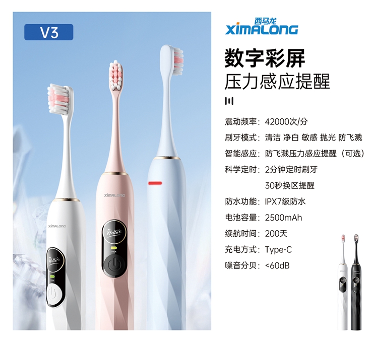 西马龙彩屏声波电动牙刷:智能护齿新体验这款智能电动牙刷将科技感与实用性完美结合: