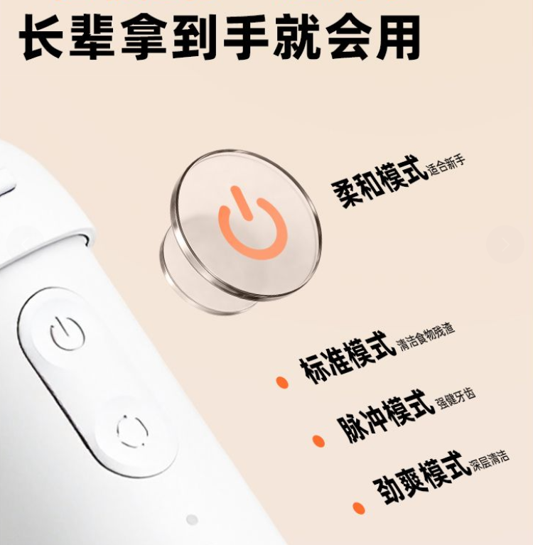 使用门槛低:灌好温水,打开开关,哪里不舒服冲哪里。相比牙线需要灵活的手法,冲牙器对视力不佳、手指不灵活的长者极为友好。
