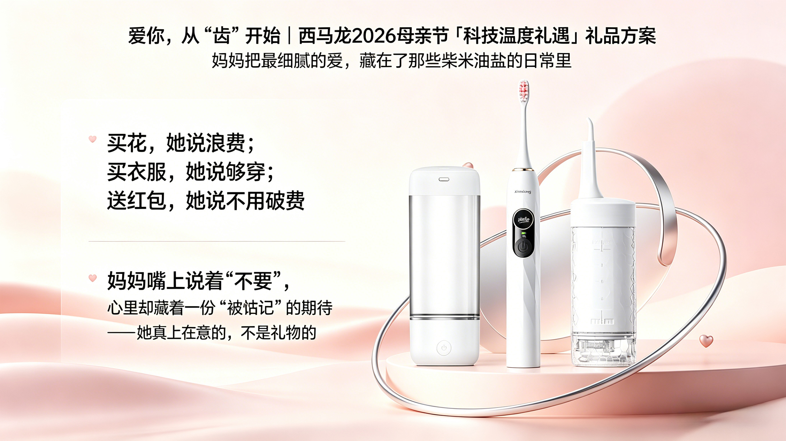 在这个母亲节,西马龙科技以「爱你,从“齿”开始」为主题,专为礼品市场打造了一份兼具科技温度与实用价值的「健康科技礼遇方案」 ,让口腔健康成为陪伴妈妈日常的最长情告白。